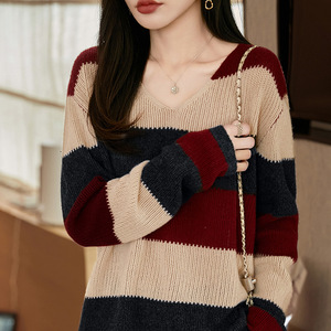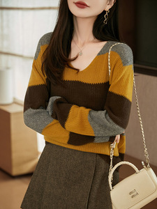 2025秋季新款女装韩系条纹女士针织衫宽显瘦软糯松弛感毛衣A7552