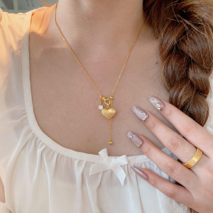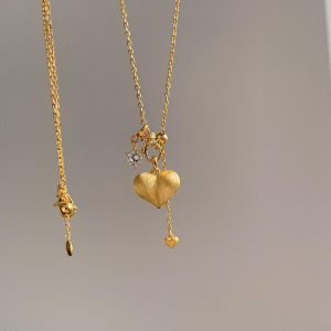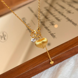 S925纯银拉丝桃心跑环闪钻项链女中古风复古轻奢小红书爆款锁骨链