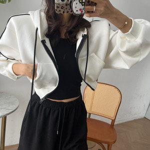 东大门ins秋日新款韩版慵懒感减龄运动连帽收腰设计卫衣短外套女