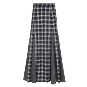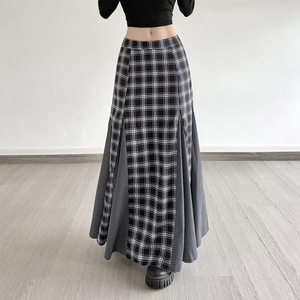 美式复古学院风大裙摆拼接格子长裙辣妹设计感修身低腰半身裙女秋