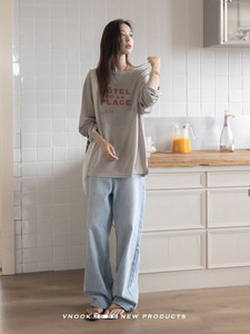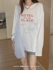 VNOOK天丝印花长袖t恤女夏2025圆领宽松显瘦大码薄款气质针织上衣