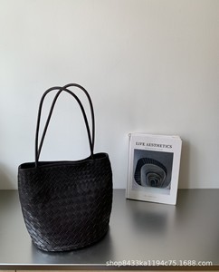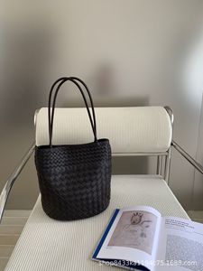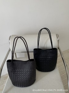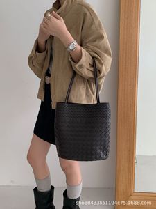 2025新款欧美时尚百搭头层羊皮水桶包小众磁扣设计简约编织包