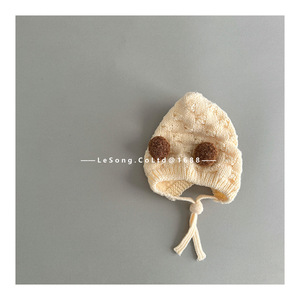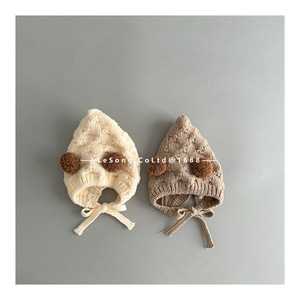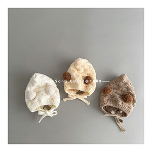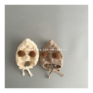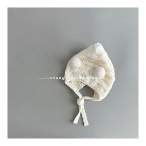 婴儿帽子秋冬季可爱双球精灵帽护耳帽男女宝宝冬天防风针织毛线帽