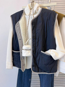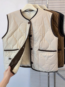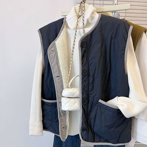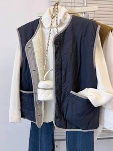 蓝色羊羔绒马甲外套女2025冬季两面穿韩版慵懒风夹棉加厚背心7595