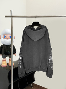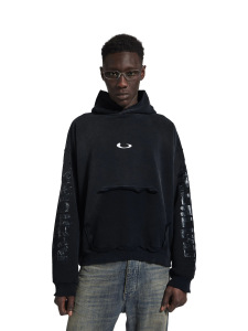 巴黎正确版B家SP半环刺绣美纹纸胶带破坏帽衫高版本潮牌连帽卫衣