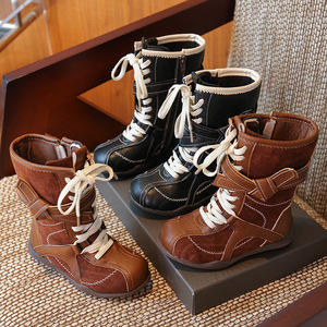 女儿童时尚中帮靴子2025秋季新款韩版公主软底短靴儿童时尚休闲鞋