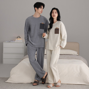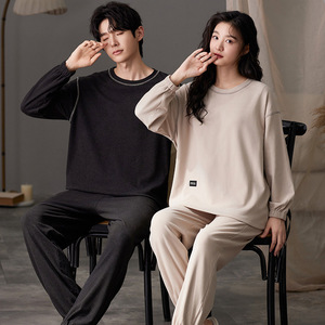 冬季双面德绒情侣睡衣长袖长裤圆领套头可外穿宽松保暖加厚家居服
