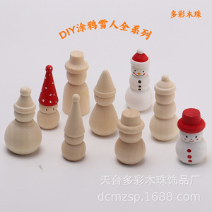 原木色儿童DIY彩绘圣诞小木人木头雪人涂鸦白胚圣诞雪人木偶摆件