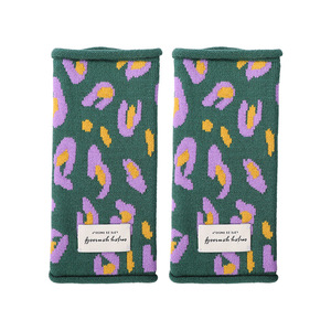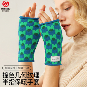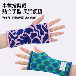 亚马逊冬季保暖手套女撞色几何纹理半指手套男高弹百搭保暖手套女