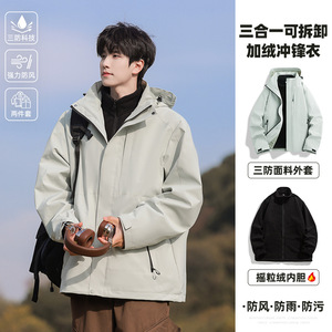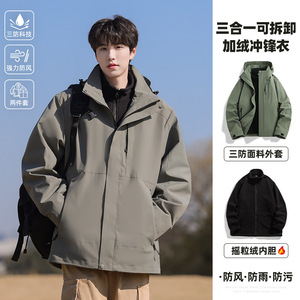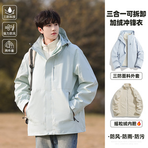 NASA三合一冲锋夹克男士春秋季2025新款青少年户外防风衣工装外套