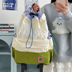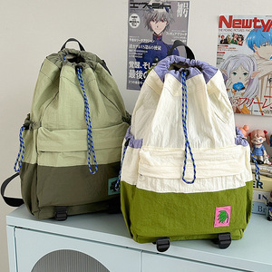 撞色抽绳双肩包 大容量轻便户外背包 休闲百搭学生书包