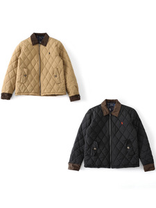 RL拉夫衍缝菱形格英伦复古灯芯绒老干部棉服翻领夹克外套男女同款