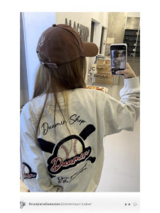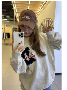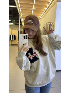 美式复古毛巾绣圆领卫衣女秋季2025新款oversize潮牌宽松长袖上衣