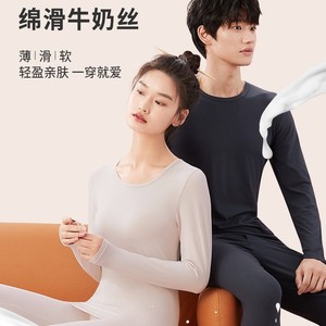香蒲绒情侣保暖内衣女薄款轻盈高弹柔软牛奶丝圆领秋衣秋裤套装男