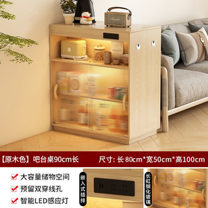 【原木色】吧台桌+推拉柜