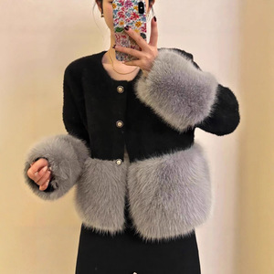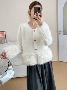 法式气质小香风拼接毛毛针织开衫女2025秋冬新款仿水貂绒毛衣外套