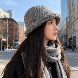 秋冬日系加厚毛线渔夫帽子女卷边盆帽纯色百搭保暖显脸小针织帽男