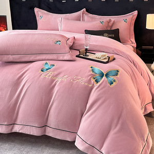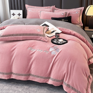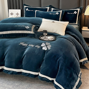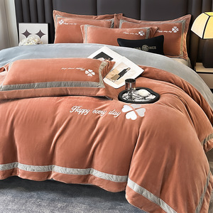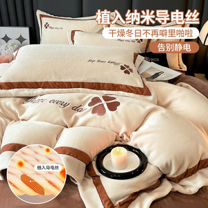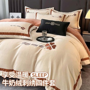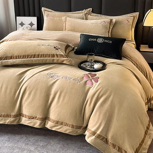 轻奢高级感牛奶绒四件套2025新款冬季双面加厚法兰珊瑚绒被套床单