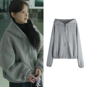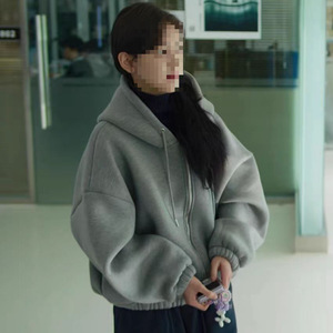 凡人歌章若楠李晓悦同款韩版宽松慵懒灰色连帽加绒卫衣外套女