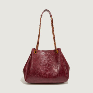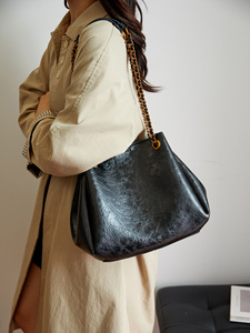 单肩包秋冬新款油蜡皮包包女时尚链条大容量通勤包高级感托特包女