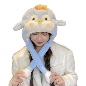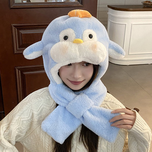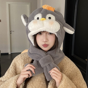 秋冬帽子女卡通企鹅可爱冬季新款雷锋帽毛绒加厚保暖耳朵会动护耳