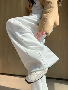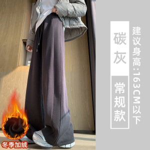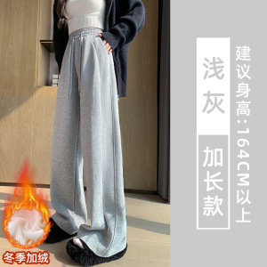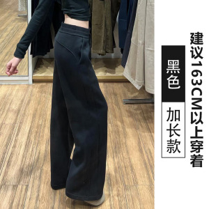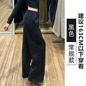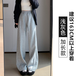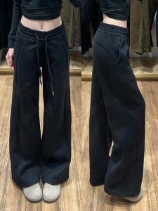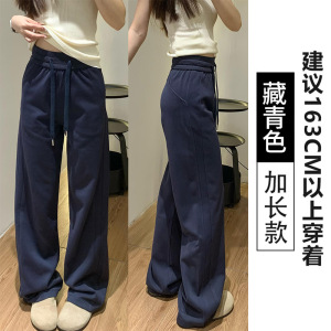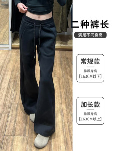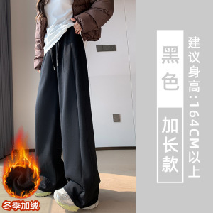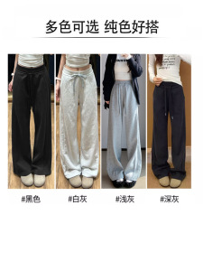 黑色运动裤女春秋季2025新宽松阔腿窄版直筒美式休闲lulu同款卫裤