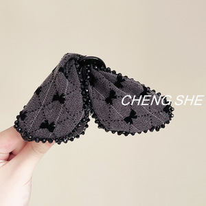 高级感布艺蝴蝶结三角抓夹女2025新款后脑勺盘发头饰鲨鱼夹子发卡