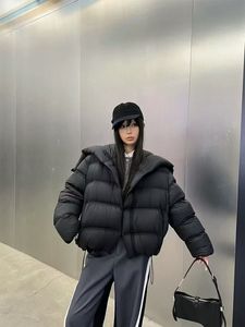 设计感波浪羽绒服女短款立领加厚云朵泡芙90白鸭绒冬季新款外套潮