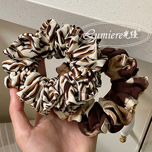 熔岩巧克力小蛋糕软糯褶皱小肠圈小众设计ins时尚新款马尾发绳女