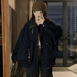 大码美式复古时尚工装外套女装2025新款秋季胖MM宽松显瘦夹克上衣