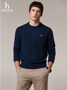 Hazzys/哈吉斯25秋季新款男士圆领保暖毛衣针织套头衫一件代发