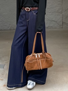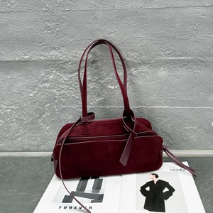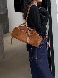 跨境磨砂牛皮保龄球包巴黎同款复古麂皮单肩包欧美时尚真皮腋下包