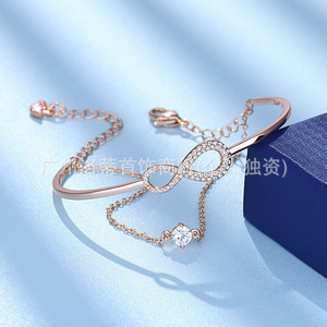 爱心天鹅玫瑰金手链