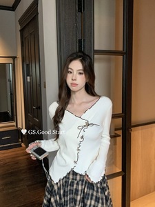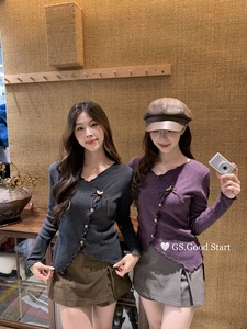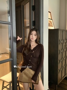 【FEI】2025秋季复古气质V领木扣卷边设计修身显瘦软糯针织开衫
