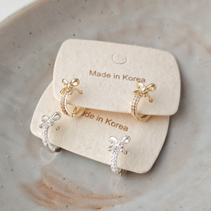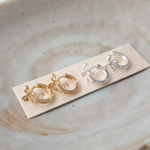 锆石蝴蝶结小耳圈耳环女小众设计感简约气质高级感轻奢耳钉耳饰