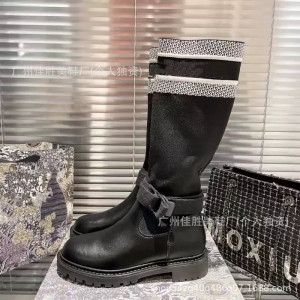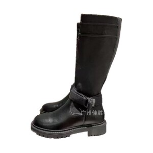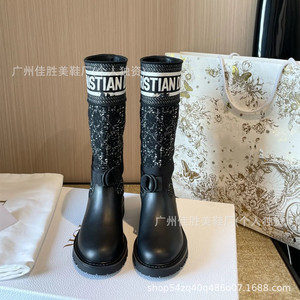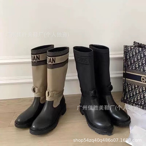 高版本D字母刺绣靴高筒靴拼色中筒靴明星同款长靴不过膝骑士靴女