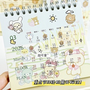 2026轻松熊大号台历ins高颜值可爱卡通日历手账计划学生桌面摆件