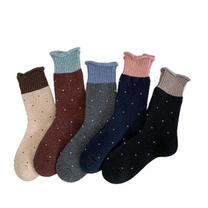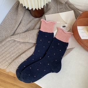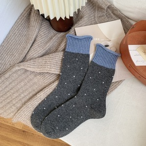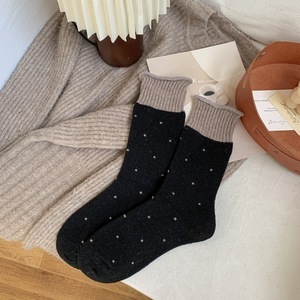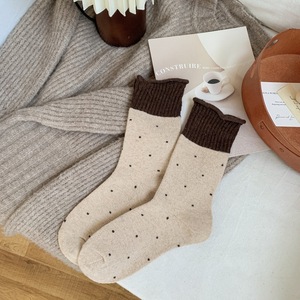 冬季加厚保暖氛围感波点羊毛袜拼色百搭撞色韩系ins穿搭女中筒袜
