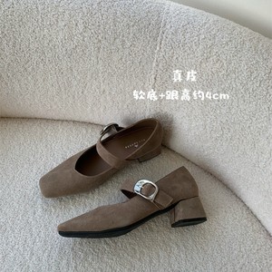 ALILOVERS 法式磨砂皮玛丽珍鞋2025秋季新款粗跟仙女晚风气质女鞋