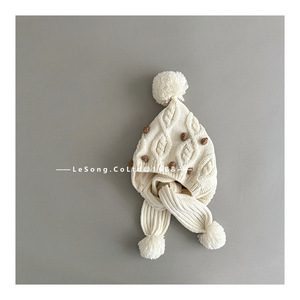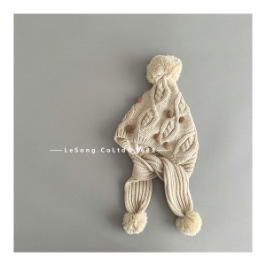 秋冬儿童帽子围巾一体针织围巾帽韩版女宝宝保暖加绒护耳毛线帽潮