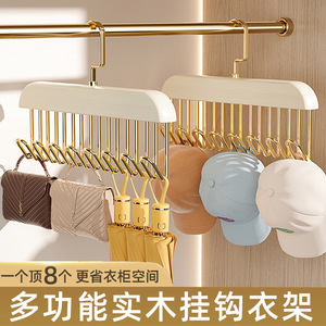 新款实木衣架八钩多钩衣架内衣吊带可钩收纳神器复古原木衣架