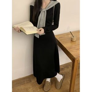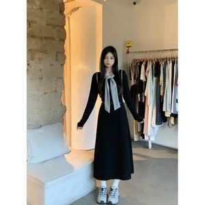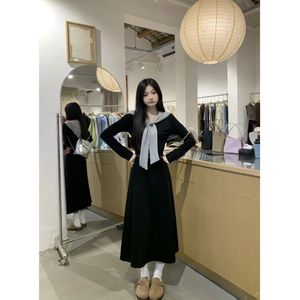 法式气质连帽披肩假两件连衣裙女秋季2025新款收腰显瘦撞色中长裙