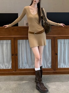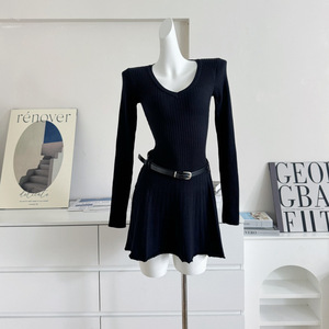 法式连衣裙女2025新款秋漂亮冷淡系长袖气质小个子针织裙子