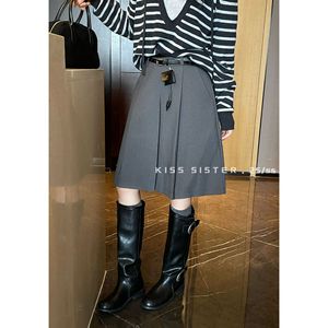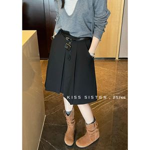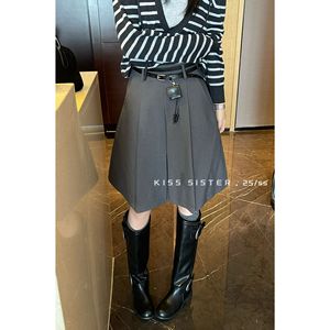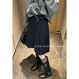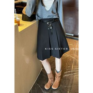 KISS SISTER-褶A字中长裙垂坠感百搭休闲舒适半身裙(配腰带)A1832