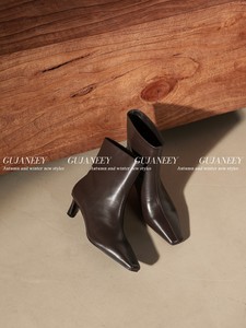 欧洲站女鞋25秋冬时尚软混种羊皮小方头舒适款套筒小猫低跟皮短靴