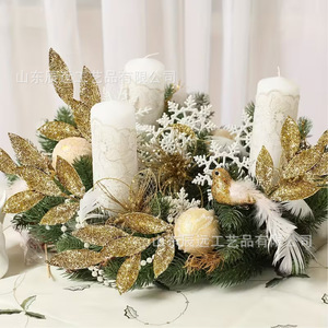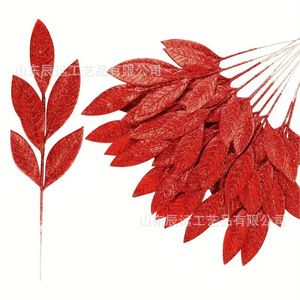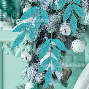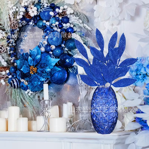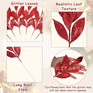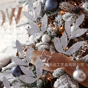 跨境爆款闪光叶圣诞装饰品家居花瓶插枝节日圣诞树仿真花源头批发