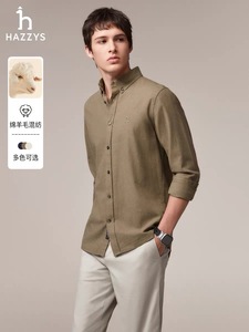 Hazzys/哈吉斯25秋季新款男士商务休闲羊毛混纺衬衫一件代发