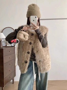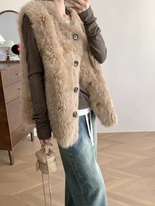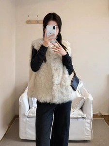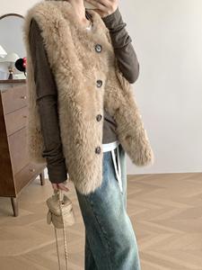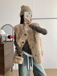 2025秋冬新款托卡欧尼马甲仿皮草外套女皮毛一体短款羊羔毛绒背心