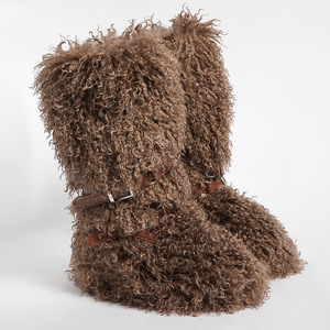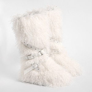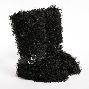 跨境仿滩羊毛(平底)铆钉靴炸街毛毛靴绑带雪地靴朋克靴MO40122