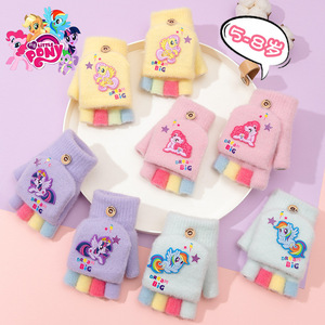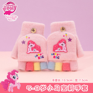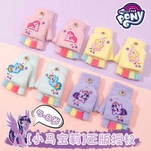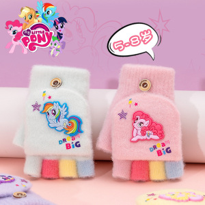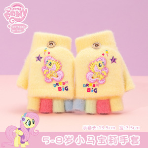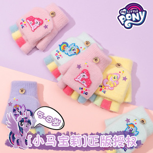 小马宝莉儿童手套女孩学生半指露指翻盖写字卡通可爱针织毛线手套